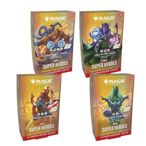 Zestaw wszystkich 4 talii Commander w wersji kolekcjonerskiej. Każda talia zawiera 100 kart Surge Foil. Produkt dla koneserów Marvela i Magic. Kup w TCG Love Radom. PREORDER: Premiera 26.06.2026. Płatność w ciągu 7 dni. Wysyłka łączona.
